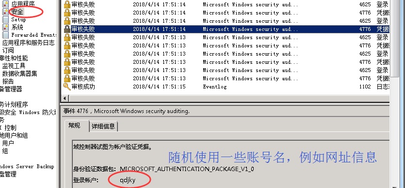 当服务器的安全日志中出现了大量的审核失败的登录,如下图所示,则是受到了外部攻击。如果不解决的话,一直会产生新日志,时间长了可能会占满C盘。